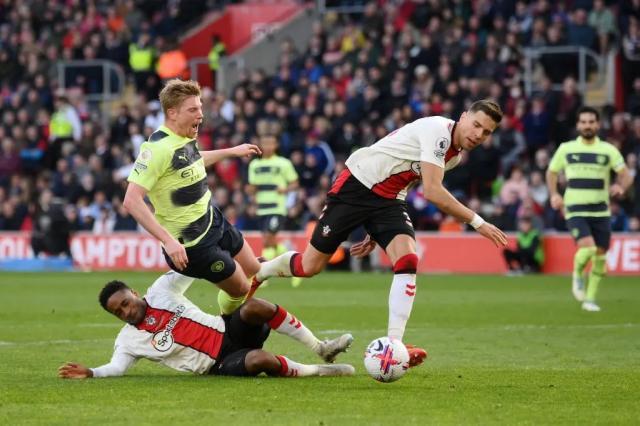 英超第30轮,哈兰德梅开二度,格里利什传射,阿尔瓦雷斯点射,德布劳内达成英超100助攻,曼城客场4-1大胜副班长南安普敦,同赛29场落后榜首阿森纳5分。